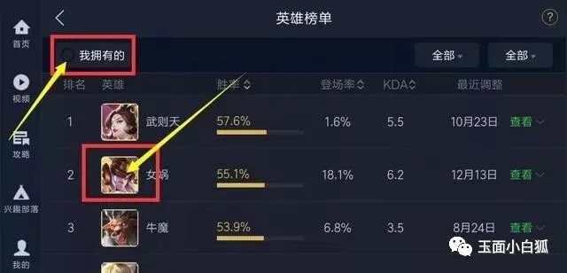 3、点击英雄榜单上的头像,可以跳转至奖励领取页面;(先勾选:我拥有的,快速找到可领取奖励的英雄)