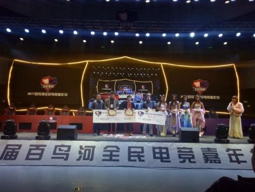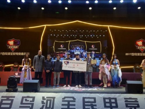 2017首届百鸟河全民电竞嘉年华于12月12日在百鸟河数字小镇双创园进行了32强争夺冠军的比赛,SG战队在《王者荣耀》项目的决赛中击败SCJ战队。双方在决赛中为现场观众贡献了一场王者级的对抗。贵州省社会体育管理中心主任靖琦伟,惠水县县委常委、县人民政府副县长龙木义,涟江燕子洞风景名胜区管理处处长、县文旅局局长陈应勇,贵州迦太利华信息科技有限公司CEO黄出为,贵州省青年体育协会电竞联盟常务副会长张仲禹,现场五百余观众以及关注赛事直播的所有玩家,一起见证了首届冠军在百鸟河数字小镇中加冕。