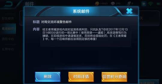 有小伙伴称自己排位遇到一个特别坑的队友,就骂了一句,结果就收到了天美发来的邮件。信誉分扣除3分,连续扣15分将会面临禁赛。