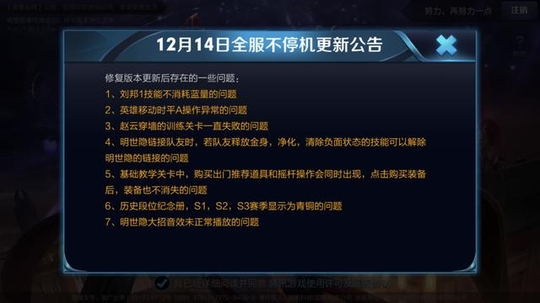 王者荣耀:新版本出现多个BUG,12月14日官方进行紧急修复!
