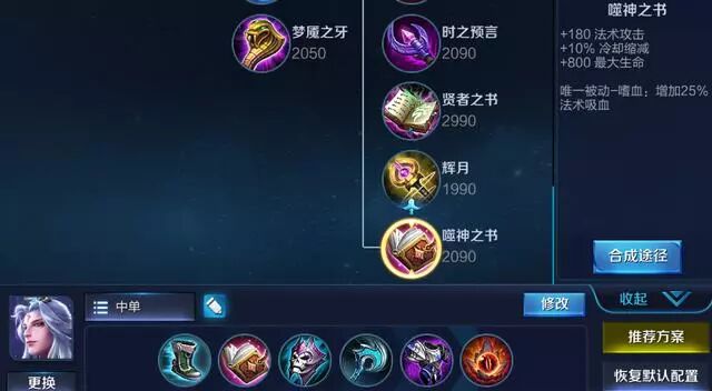思路是个中单吸血流,恶心的存在。前期小吸血书过度,面具增加输出能力。冰杖可以无限粘人,配合加速近身输出。不死鸟之眼可以提升回复效果。
