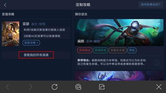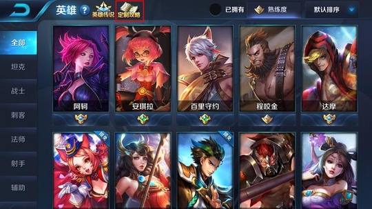 接着就进入英雄界面了,再点击左上方的定制攻略一栏,其他不要管,点进去就是了。