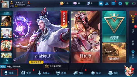 首先打开王者荣耀客户端,进入游戏界面,等到出现上图界面时,点击左下角的英雄分栏。