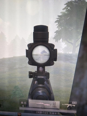 这是开镜之后的四倍镜,的的确确就是四倍镜的样子,可是这距离和大小怎么一点都没变?就和基瞄的时候一样,没有任何的放大操作。