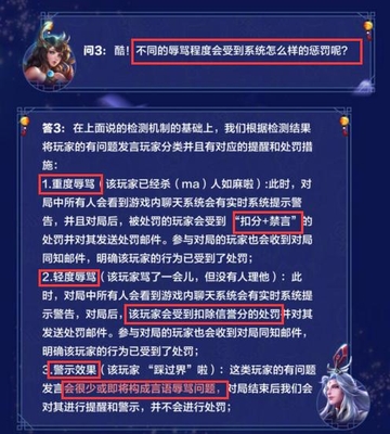 王者荣耀官方昨天又发布了关于言语辱骂新的惩罚机制,这下玩家彻底崩溃。内容如下:对于游戏中部分玩家一言不合就开骂的情况,策划大大有了新的动作。近期将不断优化检测机制,提高对玩家言论是否上升到“言语辱骂”的识别和判断,并对这部分玩家进行分类处理。