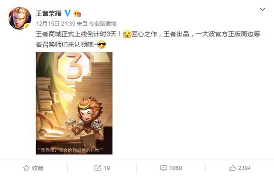 而王者荣耀官方微博,为了宣传王者商城的正式上线,还特意倒计时了两次。