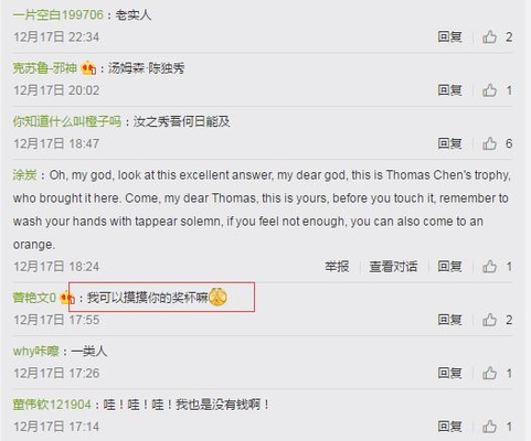 其他网友们表示,这样耿直的四个字简直可爱翻了,日常摸奖杯、买橘子、陈独秀……