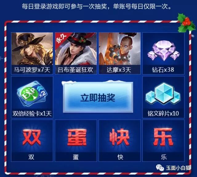 王者荣耀:每日登录游戏,抽圣诞狂欢永久皮肤,领传说皮肤体验卡