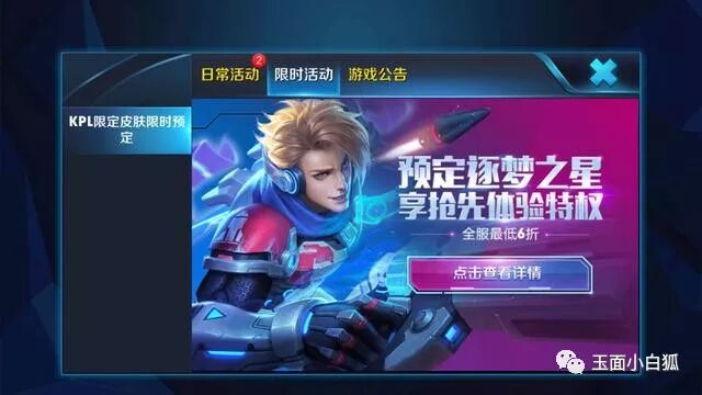 王者荣耀:逐梦之星6折优惠,购买地点不在商城,皮肤不可赠送