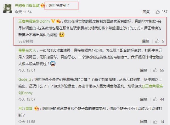 王者荣耀官方策划Donny刚刚发布了一条主要内容为向玩家致歉的微博。