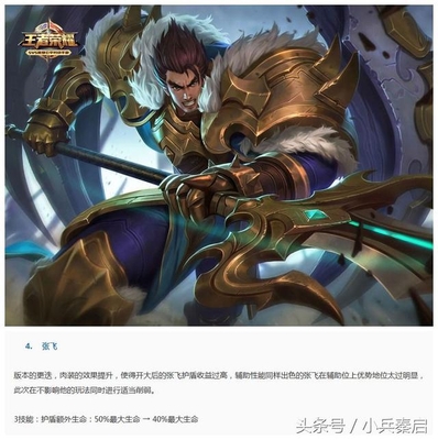 天美终于注意到张飞了,其实张飞一直以来的强度都是非常高的。从KPL赛场的出场率就可以看出。团队之中只要有一名满熟练度的张飞,信心是非常足的,特别是张飞开大之后各种越塔各种浪,同样经济下,三个人留不下一名开大的张飞。这一次削弱的是张飞开大之后的额外生命。