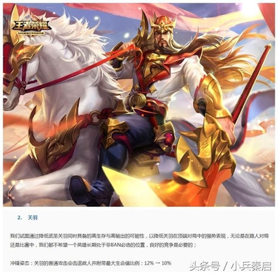 关羽这一名英雄有点特殊,很多普通玩家觉得关羽在这个控制英雄超多的版本根本秀不起来,但是数据却不是这么说的,数据分析说明,现在关羽的BAN率依旧居高不下,官方觉得有必要再次削弱关羽来提升出场率,不知道各位小伙伴们怎么看呢?