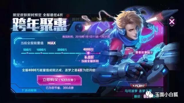王者荣耀:元旦六大活动开启,点券夺宝打折,1元新年礼盒开售