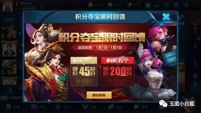 积分夺宝原名点券夺宝,可抽荣耀水晶,兑换稀有皮肤和稀有英雄。这个活动持续一周,是一个非常难开的活动,几个月才开启一次,RMB玩家千万不要错过!