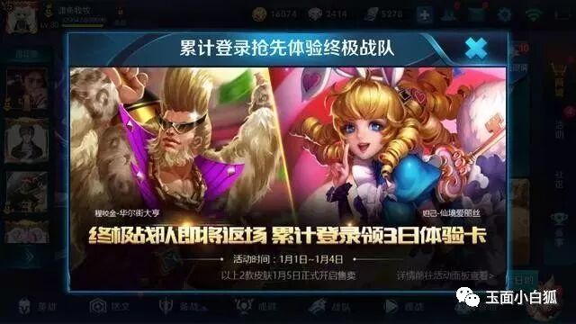 华尔街大亨与仙境爱丽丝体验卡免费领取,从今日起,连续登录两天获得仙境爱丽丝体验卡3日,连续登录四天获得华尔街大亨体验卡3日。在1月5日当天会正式出售这两款皮肤,持续七天,售价288点券,火炮千金与天堂福音后续返场!
