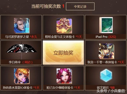 预约完之后,拉下来,还会有一个抽奖活动,放眼望去,奖品还是很丰富的,不过网友都知道属于可望不可得系列。小编抽完之后,只得到了一个妲己的皮肤体验卡。