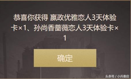 点击预约填好相关信息之后,每人都可以得到嬴政的优雅恋人和孙尚香的蔷薇恋人体验卡*3天。不分客户端,人人有份,现在已经有两千万网友获得,其中包括你了么?