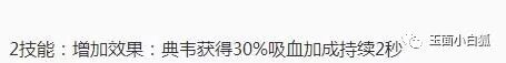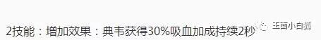 典韦:2技能新增吸血效果,站撸能力大幅提升,但受限于技能无位移,典韦距离崛起始终差一步;