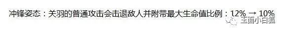 关羽:冲锋状态下,每个技能的第二段伤害下调2%,整体伤害降低。