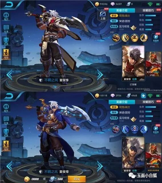 夏侯惇在之前就进行了一次优化,这一次更新主要是修改右侧的头像,终于不是色老头了。
