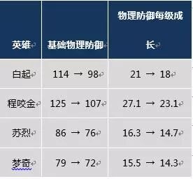 (苏烈、梦奇由被动提供大量防御,期望继续保持这样的特色,与之对应下调其基础物理防御及成长)