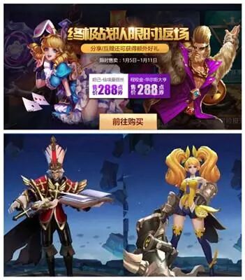 ①终极战队第二弹将会开启返场,第一次结束就将开启第二次,张良—天堂福音、孙尚香—火炮千金,连款皮肤将在1月12日正式开售,售价和第一单的程咬金妲己组合一样,只要288点券。