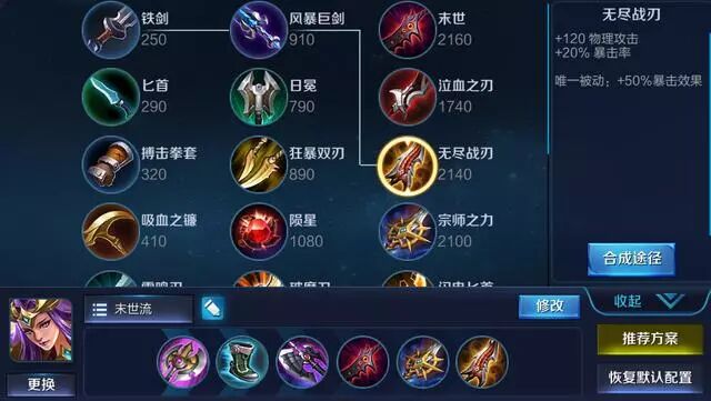 保证前期打野的回复能力,黑切是前期核心装,雅典娜需要攻速支撑二技能的戳人速度,末世的30攻速以及被动效果对于雅典娜打肉非常适合,后期宗师无尽成型,很暴力。