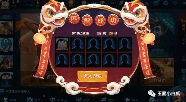 匹配界面非常醒目,而且还有一副对联,意思是祝大家早日登上王者宝座,横联是匹配成功,很暖心的一个小设计!