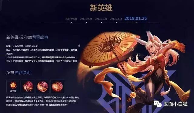 公孙离预计售价13888金币,1月25日上架,定位射手适合打野。