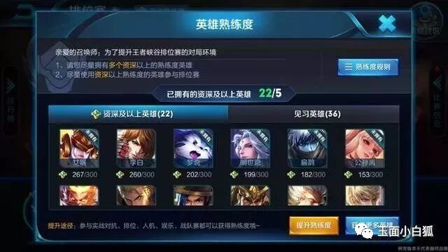 排位规则调整:绿色(2级)熟练度以下英雄不能参与排位赛。