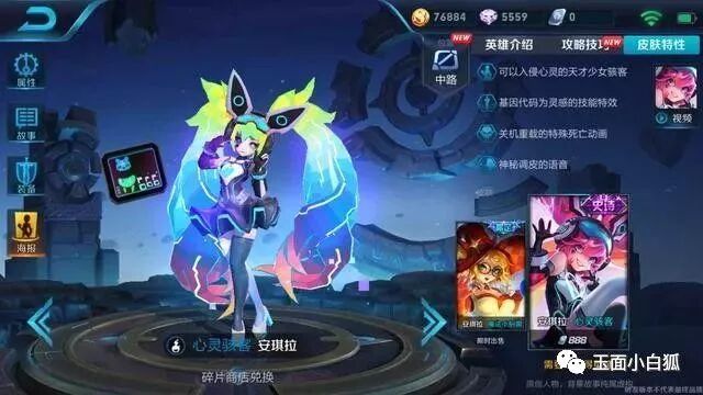 心灵骇客售价888点券,首周折扣710点券,1月30日正式上架出售。这款皮肤拥有四种形态,每种形态的马尾辫色彩都不相同,小白狐也成功的截下了四个颜色的马尾辫,分别是橙色、红色、蓝色、绿色。