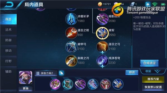 兰陵王核心装备:暗影战斧、破军
