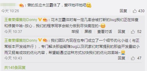 花木兰霸体的bug已经很久了,到现在也没有修复,官方还在排查中,不过这里有个好消息就是王者荣耀团队专门成立了一个细节优化小组,这个小组就是专门干这个的,希望之后会更快的解决各种小问题吧。