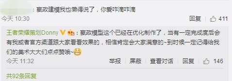 这个人语气和上面一个一模一样,但是策划还是给予回复了,好消息就是嬴政的模型已经在优化了,之后应该会上线,rmb英雄待遇就是不一样啊,(什么,赵云?他现在还算什么rmb英雄?)