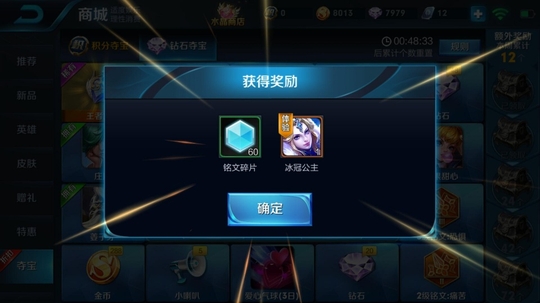 随便说一下,这个冰冠公主可以通过钻石夺宝来领取体验卡,抽取12次就行了,需要的钻石不多,大家可以先体验一下再决定是否为它充值。