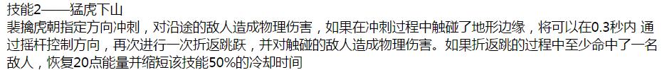 两段位移,专门用来追人和逃命,而且需要地形条件。这意味着裴擒虎又是个打野刺客。