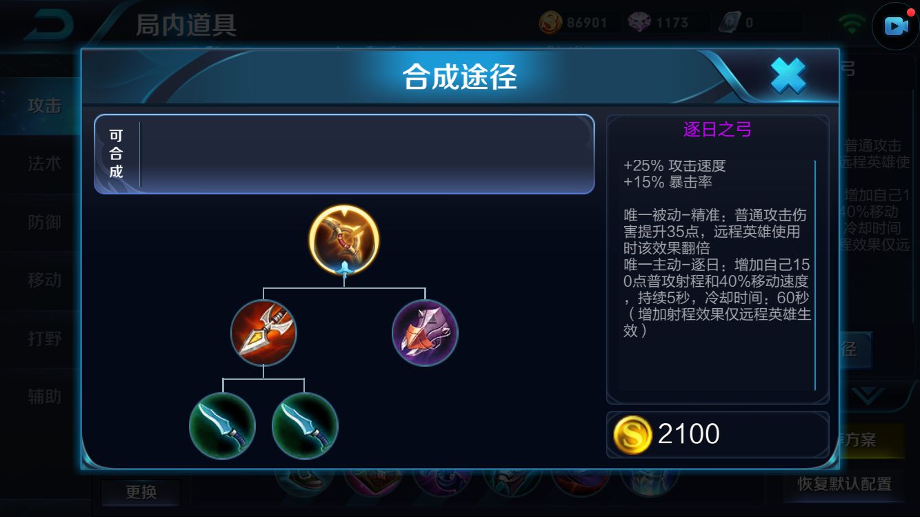 逐日之弓增强: 装备属性重做,新增被动普攻提升伤害35点,远程翻倍。逐日之弓直接去除了40点攻击力和5%的移速属性,虽然增加了新被动但是在整体性价比上依然低。