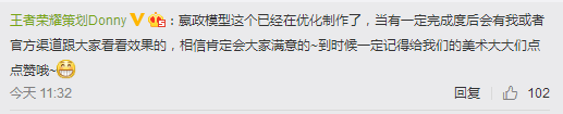 不知道有多少人是被嬴政的原画骗了才买的这个英雄,讲真的,嬴政作为一个RMB英雄,建模是真的太不走心了,完全没有一个帝王的气息,幸好事件君买不起嬴政。咳,不过天美的工作效率大家也知道的,李白和宫本的新形象到现在都没有上线体验服,嬴政这个建模还在优化中,所以就是不知道什么时候才会优化完就对了。