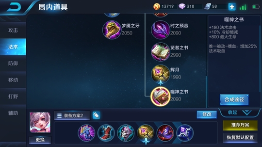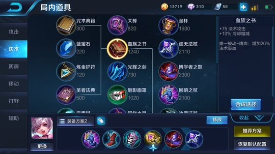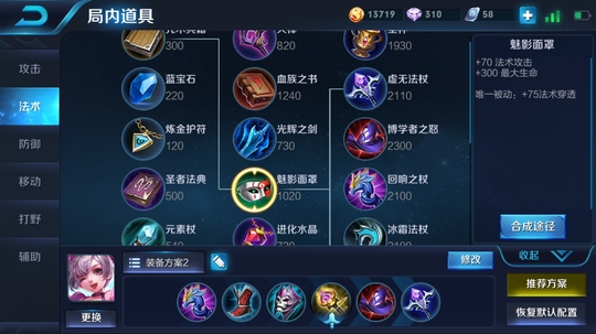 如果是出血书的中单一般来说我不建议直接出大血书,因为大血书其实是让你更肉,多给了你800血和105法强,不如换成小面具75法术穿透,而且小面具一样有70法强300血,但是前期75法穿可以直接让对面0魔抗