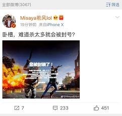 然而就在被封号关掉直播间后,若风还特地去微博发了一条自己淘汰那么多人还被封号的微博,难道这是薄情大家同情吗?虽然目前还没有相关的石锤视频以及证据,但是封号和关直播间这可都让这个前LOL职业选手紧张了一把了吧,这就是所谓的偷鸡不成蚀把米?