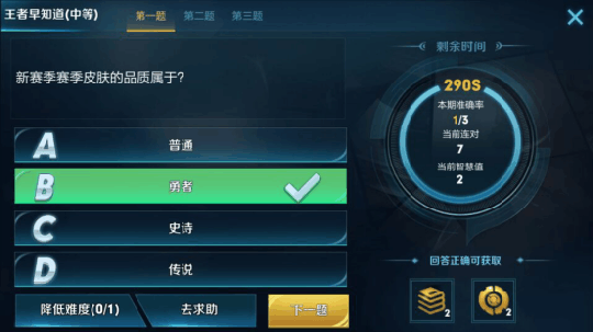 答题一:新赛季皮肤的品质属于哪种品质呢?