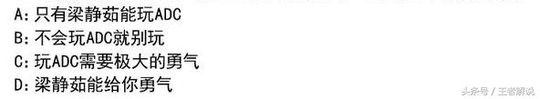 “玩游戏这么菜,是谁给你勇气,秒选ADC的,梁静茹吗?”请问这句话的意思是什么。