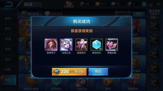 王者荣耀近日许多玩家为了新上线的雅典娜冰冠公主费尽了心思,有钱的土豪固然直接充值648块钱就可以省事了,但是对于平民玩家来说这是一笔还算蛮多的金额,所以这些玩家都想以小博大的心里去抽夺宝,结果肯定有人欢笑有人愁,通常玩家抽的都是五连抽这样几率会大一点,近日有位玩家去夺宝的时候,抽到了一个逆天的五连抽,网友看到后都纷纷表示:有点过分了!