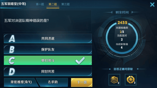 提问二:五军对决团队精神错误的是?