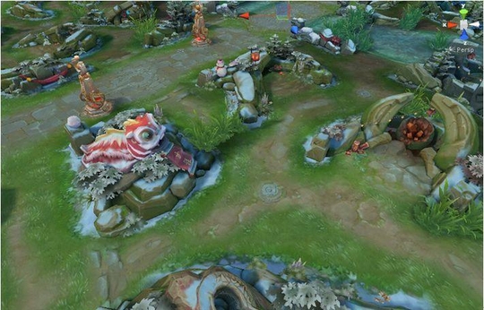 蓝方基地门口添加腾龙装饰,红方基地门口添加醒狮装饰。龙腾狮吼闹除夕,愿您上分之路畅通无忧。