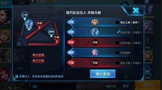 此次我们在选将界面中增加了选择自己的分路功能,玩家选择一名英雄后,系统会自动帮玩家选择该英雄的推荐分路;当然也可以手动修改分路。系统会随时同步其他玩家的选择,当出现分路不合理的情况是,给予对应的提示,希望这个新功能能够降低大家在选将界面的沟通成本,帮助大家在一局游戏中划分明确的分工,带来更多高质量的对局。