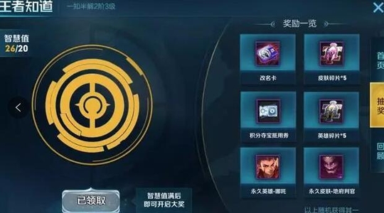 活动有六套题,每套题只有全部答对才必得英雄碎片。另外活动的要求是积满20智慧值,也就是答对20道题,答题的钥匙可通过进图任务获得.我们可以看到可能获得哪吒,钟馗皮肤,还有改名卡.