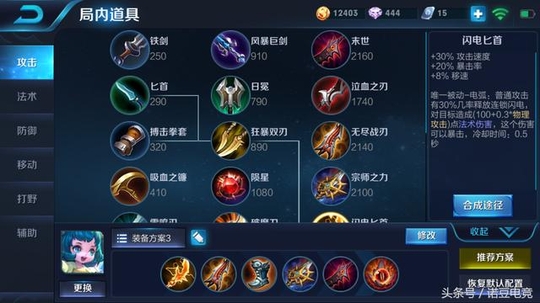 闪电匕首和末世能增加大量攻速,在前期可以选择一件,另一件后期补。我的习惯是闪电匕首,因为它同时增加了8%的移动速度,配合蔡文姬的被动可以快速逃脱对手的追击。