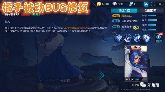 4、 目前游戏中的橘右京被动无法正确释放,29号更新后修复这个老BUG,确保都能触发橘子的被动技能。