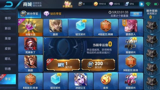 王者荣耀中的点券夺宝其实就是无限抽奖,玩家需要花费非常多的点券或者钻石才能得到一个水晶,这比商店买皮肤的成本要高多了,而天美最近频繁出新皮肤,圈钱不要表现的太明显!